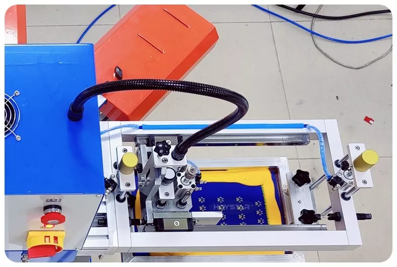 Som den professionelle producent i Kina vil vi gerne give dig højhastigheds HOYSTAR 2 farver strømper serigrafimaskine. Vores maskiner anvender PLC og berøringsskærmstyring og bruges hovedsageligt til udskrivning af forskellige typer sokker. Maskinen kan printe på sokkernes såler og hæle og er udstyret med tørreovn, der kan tørre silicium og blæk godt.