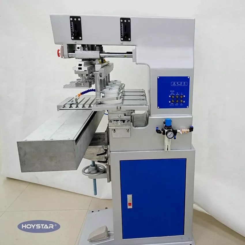 Som den professionelle producent i Kina vil vi gerne give dig en højeffektiv HOYSTAR 4-farvepudeprinter med shuttle-arbejdsbord til dækning. Vores maskiner bruger PLC og touch screen kontrol og er velegnede til udskrivning af forskellige produkter. Maskinen har den konkurrencedygtige pris sammen med et lille fodaftryk og stabil udskriftskvalitet.
