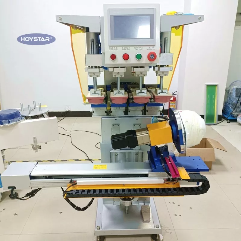 Shop tilpasset 4-farve pad-udskrivningsmaskine til hjelm fra Dongguan Hoystar Machinery Co., Ltd., som er en af producenterne og leverandørerne i Kina. Denne HOYSTAR 4-farvepudetrykmaskine til hjelm udstyret med PLC-berøringsskærms kontrolpanel, nem at betjene. Denne maskine har servomotorstyring til automatisk roterende udskrivning, der giver mulighed for at printe på 1 side, 2 sider eller 4 sider af hjelme. Arbejdsbordet er drevet til venstre/højre, drejevinkel, produkthøjder kan justeres. Hvert printhoved er uafhængigt justerbart og kan opsættes separat.
