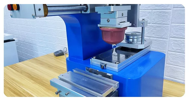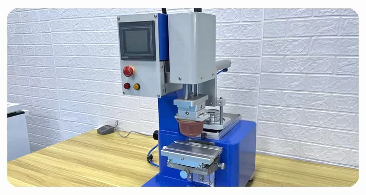 Desktop Single Color Pad Printing Machine med PLC touch screen kontrol, meget nem at betjene. Med både halvautomatiske og automatiske tilstande kan operatører tilpasse sig forskellige produktionsbehov.