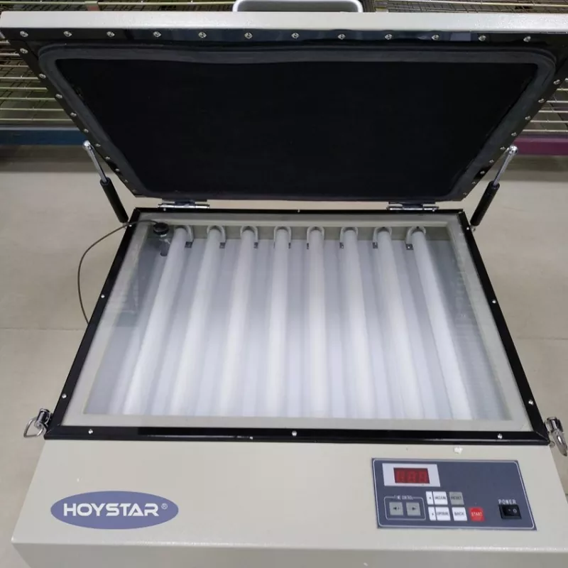 Som den professionelle producent i Kina vil vi gerne give dig højeffektiv HOYSTAR Desktop Vacuum UV Exposure Unit, denne maskine er designet til nem betjening og billig brug, velegnet til pudestencils, silketrykplader, tykke og tynde stålpudeplader, Polymetplader og PS-plader. Den sikrer hurtig og sikker eksponering, har UV-lamper med lang levetid og er udstyret med et automatisk eksponerings- og vakuumsorptionssystem styret af en højpræcisionstimer.