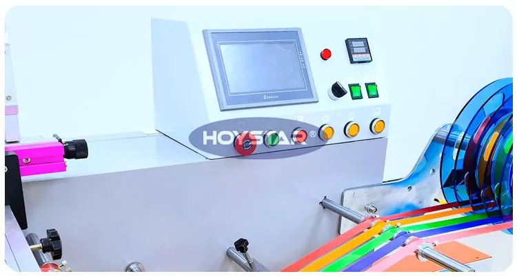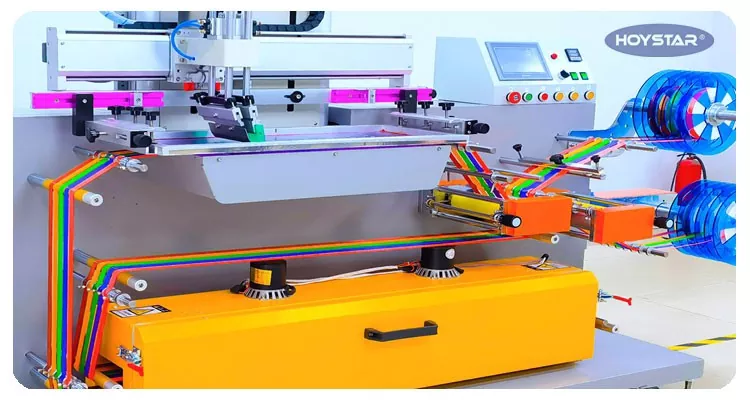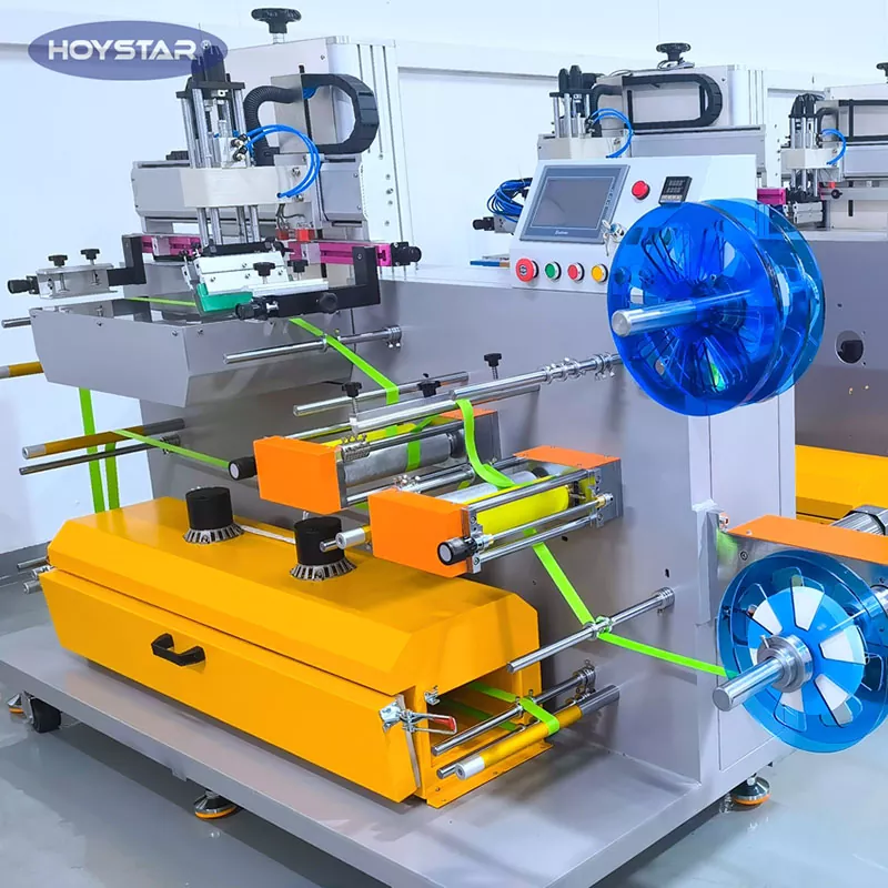 HOYSTAR er en pålidelig producent og leverandør i Kina; Denne HOYSTAR Roll To Roll Screen Printing Machine er designet til udskrivning på forskellige bånd. Dobbelthjulstilstand sikrer stabil fodring og jævn produktion. PLC touch screen kontrol, brugervenlig grænseflade til sikker, intuitiv betjening. Dobbeltlags tørreovn med varmluftcirkulation kan tørre blækket hurtigt og jævnt.