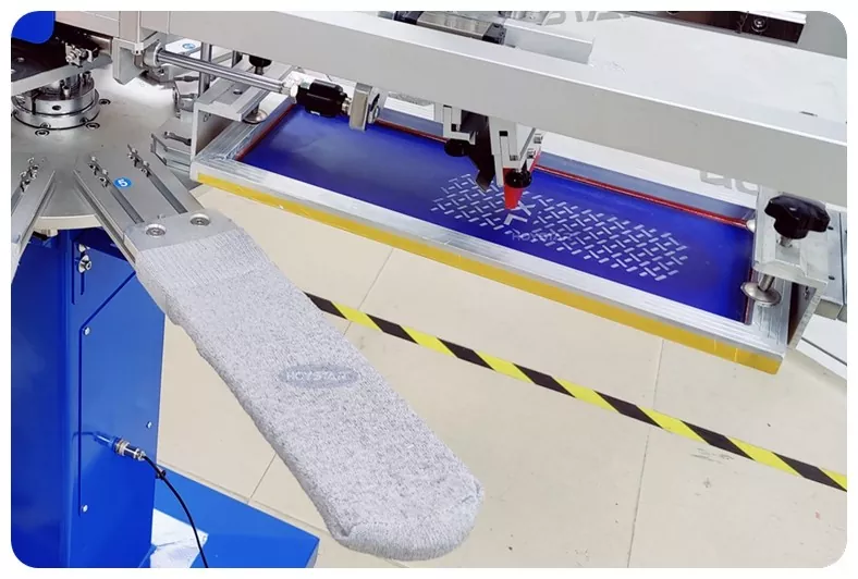 Som den professionelle producent og leverandør er HOYSTAR High Rapid Screen Printing Machine for Socks designet til applikationer i tekstilstrikkeindustrien. Med en hastighed på op til 1000PCS/Hr er den velegnet til print af skridsikre sokker, babysokker, voksenstrømper, fodboldstrømper osv. Udstyret med roterende arbejdsbord er det meget praktisk at i- og aflæse sokker. PLC touch screen kontrol, meget nem at betjene. Maskine udstyret med tørresystem kan tørre silicium og blæk godt.